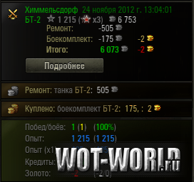 Итого за бой + XML конфиг для WoT 0.9.5Полученный опыт, процентное соотношение побед к боям, ремонт, боекомплект, кредиты, свободный опыт, различные варианты подсчёта итогов за проведенный бой.